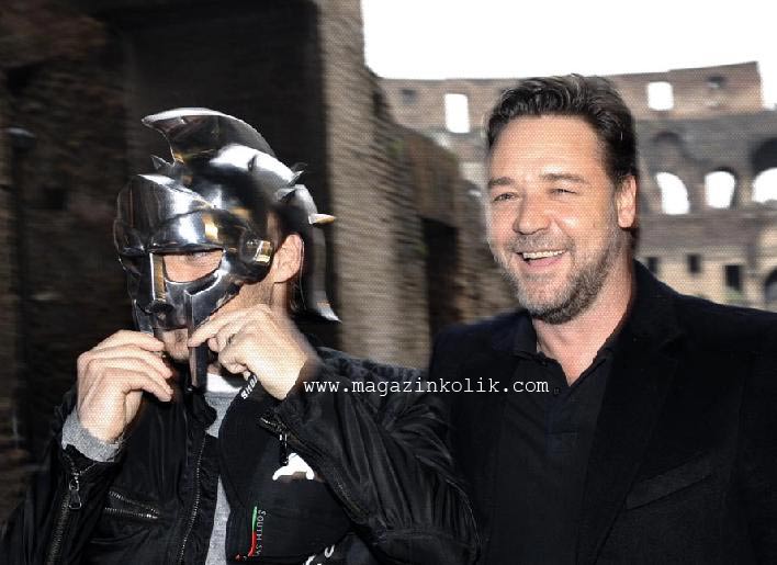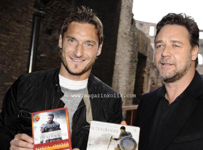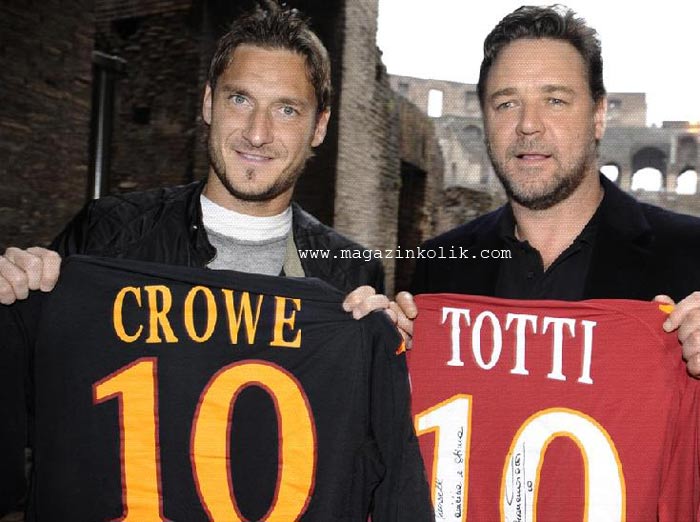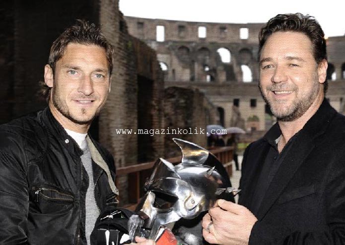 Oscarlı oyuncu Cannes film festivaline giderken Roma'da ''Colessum'u gezmek istedi..Ailesiyle Roma'nın ünlü arenasına gelen Russel Crowe karşında gladyatör maskesiyle Totti'yi görünce şaşırdı...