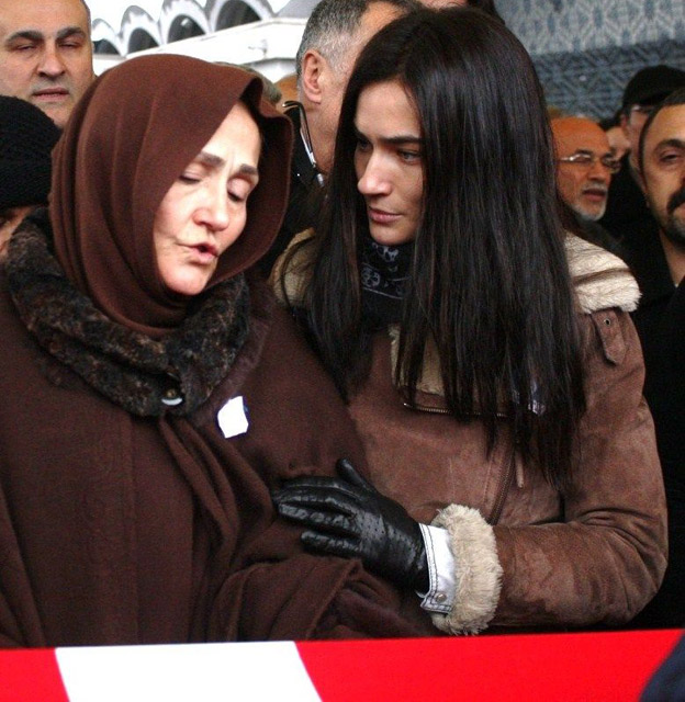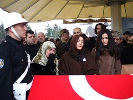Saadet Işıl Aksoy cenaze törenine arkadaşı Pamir Kramer ile katıldı. Saadet Işıl Aksoy'un oyuncu dostları cenazede üzgün sanatçıyı yanlız bıraktı.