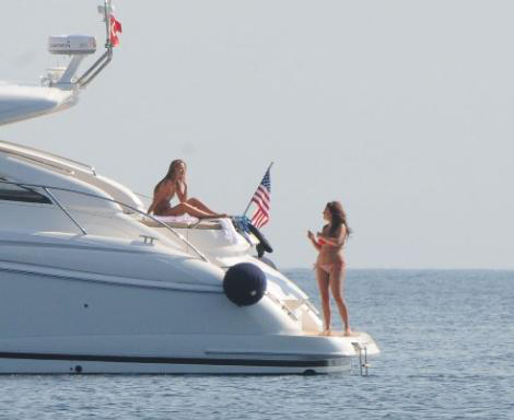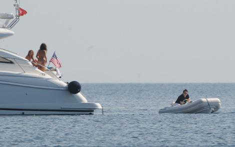 Teknesini Türkbükü'nde demirleyen ünlü komedyen, iki güzelle birden deniz ortasında keyif yaptı.