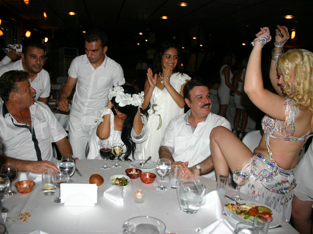 Kuruçeşme sahilinden kalkan özel yat Anadolu Hisarı açıklarında boğazın ortasına demir atarak çılgın gecenin startı verildi. Canlı müzik ve fasıl grubu eşliğinde dans edip şarkılar söyleyen konuklar oryantal ve genç oyuncu Eylül Unat'ın yaş günü pastasıyla birlikte coştular.