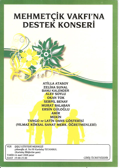 16 Mart Pazar günü saat 19'da Şişli Gösteri Merkezi'nde (Kurtuluş), birçok ünlü sanatçının katılımıyla Mehmetçiğe destek vermek amacıyla bir konser düzenlendi.