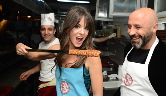 Oda Tiyatrosu sahibi Kaan Erkam’ın da katıldığı yemekte bol bol Türk lezzetlerini tadan ve Adana Kebabı'nın nasıl yapıldığını merak eden güzel oyuncu, merak içinde mutfağa girdi. Oyuncu Cemal Hünal ve yiyatrocu Kaan Erkam’ın yemek istediği kebabı elleriyle pişiren Butler, elindeki şiş kebapla objektiflere poz verdi.