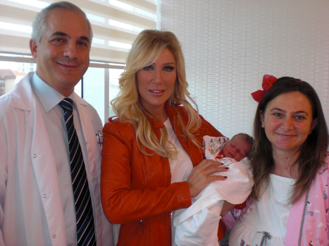 Medical Park Göztepe Hastane Kompleksi'ne yatırılan Nuray Düzgün, dün akşam saatlerinde sezeryanla bir kız çocuğu dünyaya getirdi. Sağlık durumu iyi olan bebeği ve hayranını hastanede bugün ziyarete gelen Seda Sayan, bebeğe Ata Lira takarken, hayranı ve minik yavrusuyla bol bol fotoğraf çektirdi.