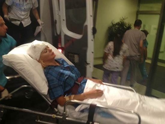 Üren?in tedbir amaçlı beyin tomografisi çekildi. Tomografi sonucu iç kanama sorunu olmadığını gören doktorlar şanssız şarkıcının başına 16 dikiş attı.