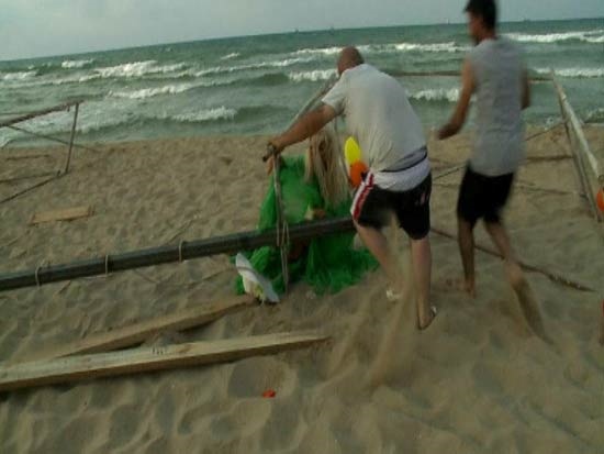 Güzel sanatçı; Tamer Aydoğdu?nun yönetmenliğinde Kilyos Kısırkaya Plajı?nda gerçekleştirilen klip çekiminde salıncak sahnesi için kurulan demir iskelenin altında kaldı.