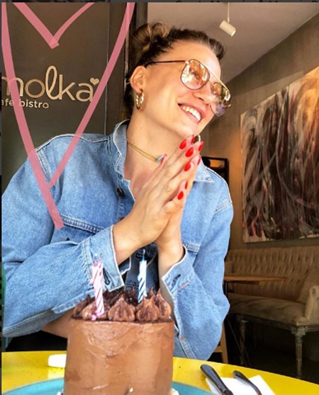 Serenay Sarıkaya da kutlamalara teşekkür ederek yanıt verirken bir yandan da sürpriz doğum günü pastasıyla işte bu pozu verdi.