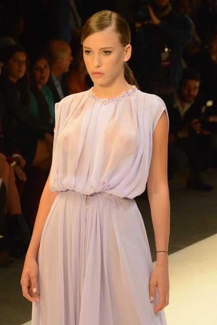 İstanbul Moda Haftası kapsamında, 10 Ekim, Çarşamba akşamı düzenlenen Dilek Hanif defilesine Serenay Sarıkaya'nın giydiği transparan elbise damgasını vurdu.