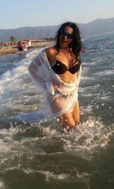 Düzgün fiziği ve güzelliği ile genç kızlara taş çıkartan Serpil Çakmaklı'yı denizde gören hayranları hatıra fotoğrafı çekilmek için birbirleriyle yarıştı.