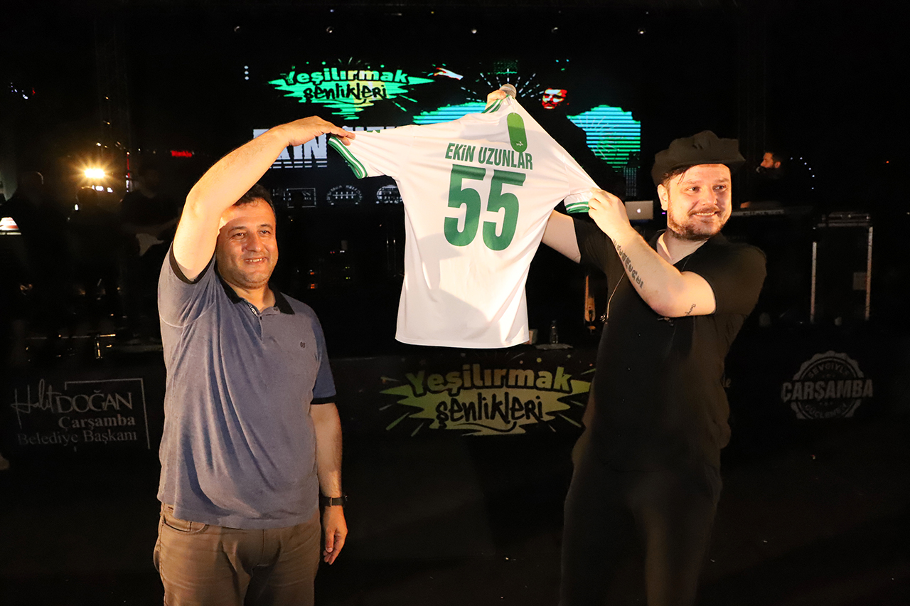 İki saati aşkın bir süre sahnede performans sergileyen Ekin Uzunlar'a konser sırasında Çarşamba Belediyesi Halit Doğan tarafından bir forma ve kasket hediye edildi.