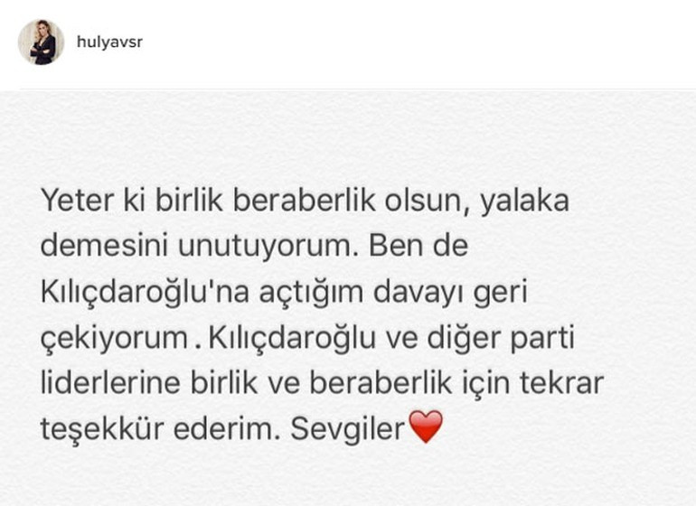 Hülya Avşar davayı geri çektiğini böyle duyurdu: