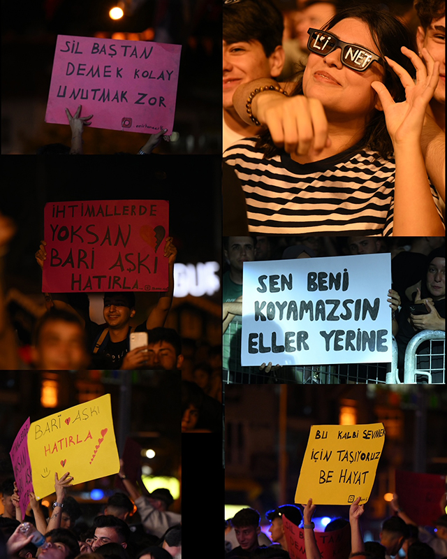 Linet'e dinleyiciler ilginç pankartlarla ve alkışlarıyla eşlik ettiler.