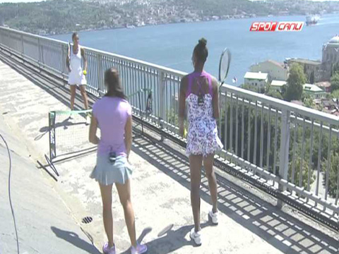 ABD'li yıldız raket, İpek Soylu ve Çağla Büyükakçay ile Boğaziçi Köprüsü'nde gösteri maçı yaptı.