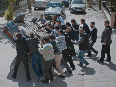 Şevkat’in sevgilisine şiddet uygulayan bir adamın arabasını devirdiği sahnelerin çekimleri sırasında, set defalarca durmak zorunda kaldı.