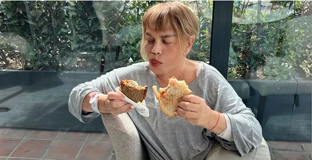 Aksu'nun iki elinde bulunan ekmekleri yediği anları paylaşan Müftüoğlu, "Yiyerek zayıflama metotlarını öğreten Sezen Aksu'm" notunu düştü.