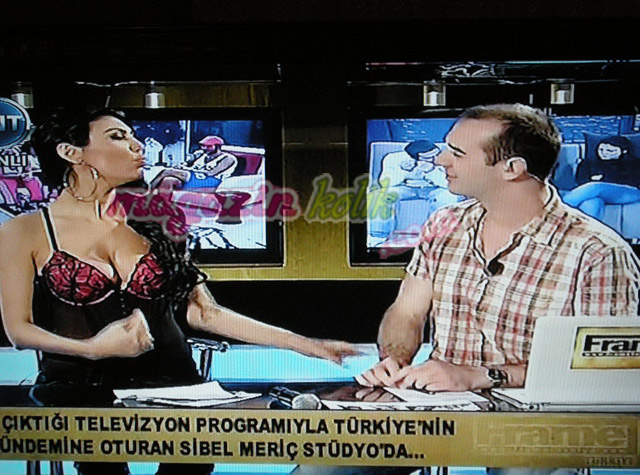 Konuk olarak TNT kanalındaki "Frame" programına katılan Sibel Meriç, bir anlamda Okan Bayülgen'in "Disko Kralı"ndaki göğüs dekoltesi ve konuşmalarının kaymağını yemeğe başladı?