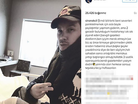 Ünlü şarkıcı Sinan Akçıl'ın dizinde menisküs yırtığı tespit edilip ameliyata alındı. Akçıl 2 gün hastanede yattıktan sonra taburcu edildi.