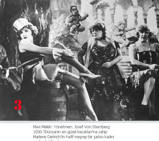 3. Mavi Melek: Yönetmen: Josef Von Sternberg 1930 Dünyanın en güzel bacaklarına sahip Marlene Dietrich'in hafif meşrep bir kadını canlandırdığı sahne