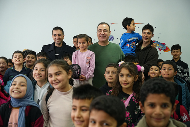 Hayatlarının en özel günlerinden birini yaşadıklarını belirten oyuncular, minik öğrenciler ile bol bol fotoğraf çektirip sohbet ettiler.