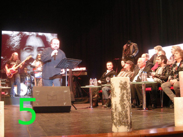 1- Barış Manço'ya hayattayken en yakın gazetecilerden ikisi Magazinkolik.com Genel Yayın Yönetmeni Nurcan Sabur ile gene Magazinkolik köşe yazarı Hulusi Tunca (Soldan 3.) Uzun yıllar konser organizatörlüğünü yapan Hasan Epirden ve adına "Halhal"şarkısını bestelediği Nazan Şoray, o gece büyük ustayı anmak için bir araya geldik?
