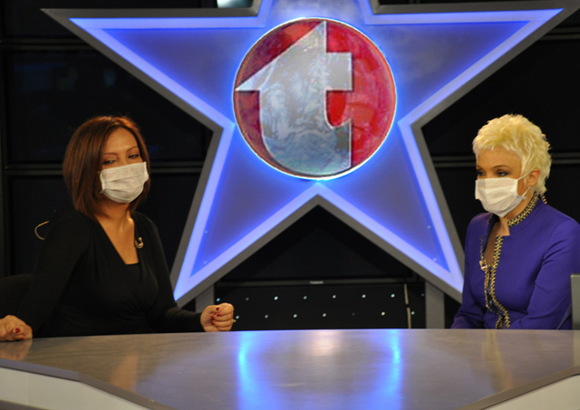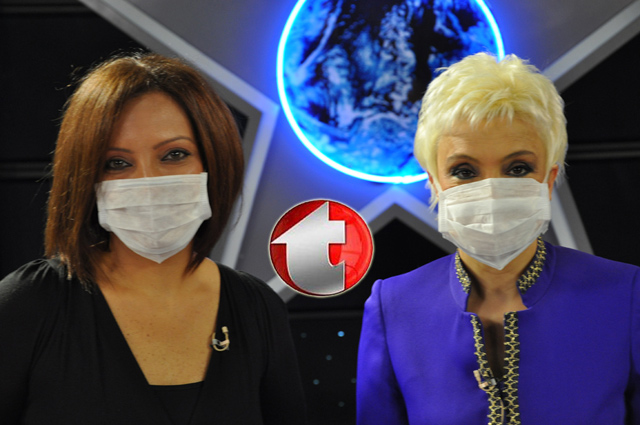 Burçin Şimşek yaklaşık 10 gün kadar önce Kanal T'de Gülgun Feyman'ın konuğu olmuş ve 2 sunucu da yayına maske takarak çıkmışlar ve domuz gribine dikkat çekmişlerdi...
