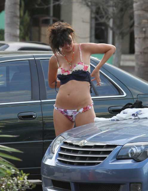 Arabaların arasında bikinisini çıkarırken flaşlar onun için patladı.