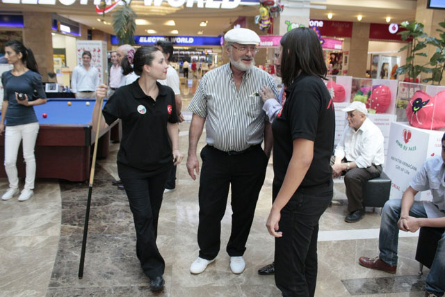 Türkiye Bilardo Federasyonu tarafından Samsun'da 12-16 tarihleri arasında düzenlenecek uluslararası Dünya artistik Bilardo Şampiyona öncesi, Astoria AVM'de tanıtım amacıyla yapılacak olan gösterilerin ilk ayağı başladı. Darülaceze sakinlerinin de katıldığı etkinlik, milli bilardocularımızla yaptıkları maçlarla keyifli bir hal aldı.