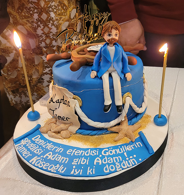 Tamer Köseoğlu, eşi Gülcan Köseoğlu'nun kendisi için yaptırdığı özel tasarım doğum günü pastasını görünce şaşkınlığını gizleyemedi.