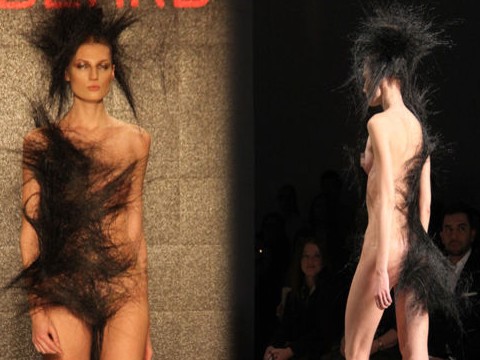 Sınırları zorlayan transparan kıyafetlerin dikkat çektiği defilede, tüylerden oluşan ve sadece vücudun belirli kıvrımlarını kapatan kostüm göze çarptı. Defileyi izleyemeye gelenler şaşkınlıklarını gizleyemedi.