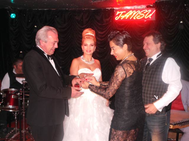 Sahilyolunun eğlence mekanlarından Marina Club`te program yapan Tansu`nun sahnesinde Ahmet Erdoğdu, Figen Özkal çifti nişan yüzüklerini takarak mutlu sona ulaştı.
