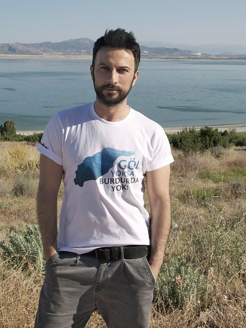 Tarkan, üzerine giydiği 'Göl Yoksa Burdur Yok' yazılı tişörtüyle dikkati çekti.