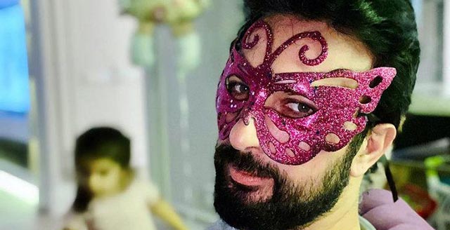 Kızı Liya ile oyun oynayan Tarkan, kelebek şeklinde pembe renkli bir maske ile poz verdi.
