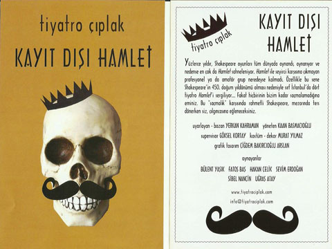 Tiyatro Çıplak olarak, bu sezon (ilk sezonumuz) evrensel yazar William Shakespeare'in Hamlet adlı oyununu Yerkan Kahraman'ın bozup uyarlamasıyla, Kaan Basmacıoğlu'nun rejisi, Murat Yılmaz'ın dekor ve kostümüyle ve Bülent Yaşık, Fatoş Baş, Hakan Çelik, Sevim Erdoğan, Sibel Nançin, Uğraş Atay gibi oyuncuların performansıyla sahneliyoruz.