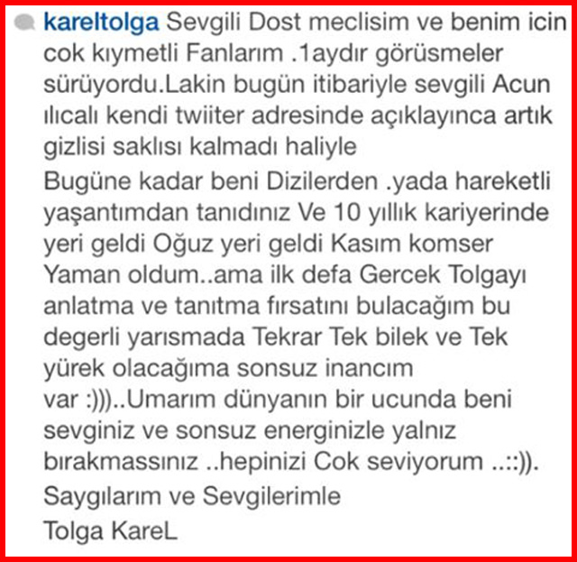 Tolga Karel'de bunun üzerine sosyal medyada bir açıklama yaptı...