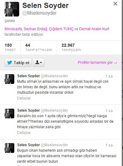 Ayrıca ben bu haberi sadece kendime değil beraber olduğum Selen Soyder'e de hakaret olarak görüyor ve bahsi geçen bu haberden dolayı avukatlarımla gerekli görüşmeleri yapıyorum.