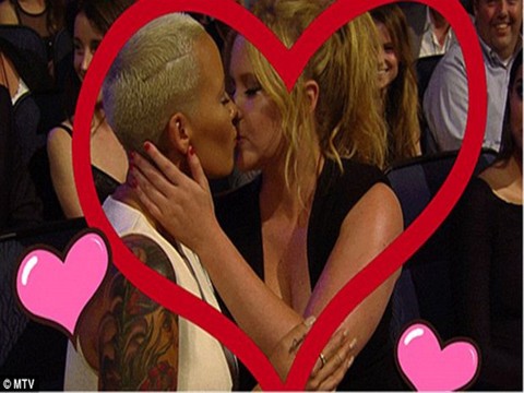 MTV Film Ödülleri'nde Amy Schumer ile öpüşen Amber Rose, o anı resmi Instagram sayfasından paylaştı ve "Amy Schumer ile öpüştükten sonra kesinlikle yarı lezbiyenim" yazdı.