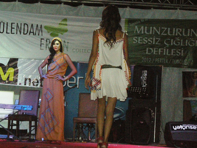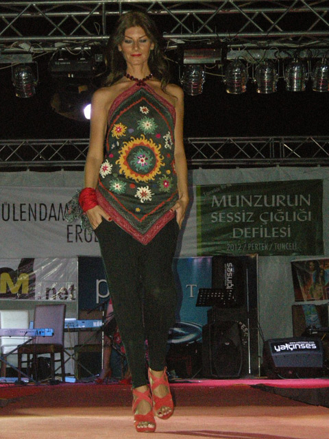 Tunceli'nin Pertek İlçesi'nde aralarında Yeliz Öney, Merve İldeniz ve Ece Gürsel'in de yer aldığı 12 ünlü manken, "Munzur'un Sessiz Çığlığı" adlı defilede kentin yerel motiflerini taşıyan kıyafetlerle podyuma çıktı.