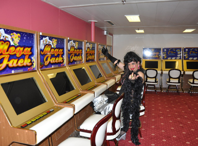 uluslararası sularda hizmet veren Ankara Cruise Gemisi'nin kumarhanesinde, taklit Bülent Ersoy'un şans dağıttığı