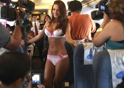 UÇAKTA İÇ ÇAMAŞIRI DEFİLESİ NEFES KESTİ