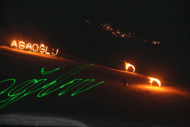 Kayak hocalarının gece dağdan yaptıkları meşaleli gösteri, ateş çemberinden geçerek sona ererken, yaklaşık 15 dakika süren havai fişek gösterisi ise uzun yıllar hafızalardan silinmeyecek bir görüntü oluşturdu? Ağaoğlu My Resort'un sahibi Ali Ağaoğlu'nu oğlu Alican İle kızı Sena da yalnız bırakmadı? Sena ve Alican, babalarının bu mutluluğunu kendisini öperek paylaştı?
