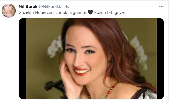 Kahroldum üzüntüden, inanamadım. Mekanın cennet olsun güzel arkadaşım benim. Daha yeni şimdi duydum. Olamaz böyle bir şey. Gencecik kadın, sesi güzel, kendi güzel, ruhu güzel... Mekanın cennet olsun... Of of, ailesine sabır versin. Sevenlerinin başı sağ olsun. Ailesinin başı sağ olsun.
