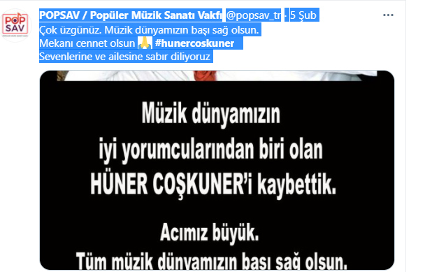 ÜNLÜ İSİMLERDEN HÜNER ÇOŞKUNER'E VEDA MESAJLARI!