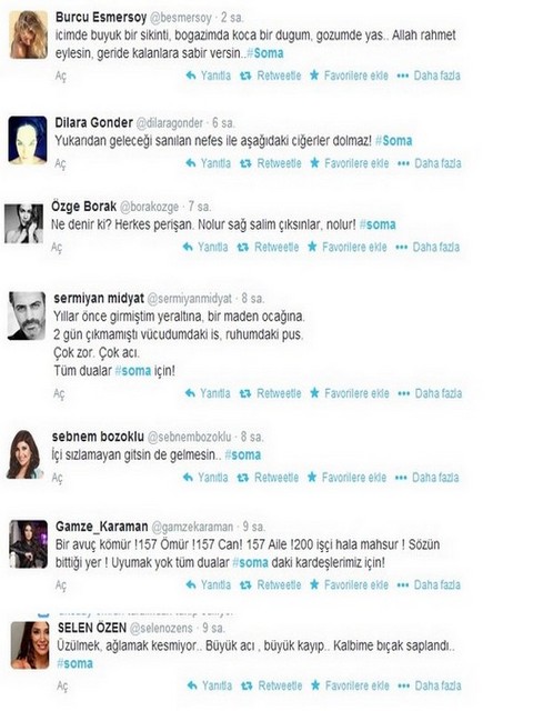Ünlüler, Manisa Soma`da kömür ocağında çıkan yangında hayatını kaybeden ve mahsur kalan işçilerle ilgili tweet attı...