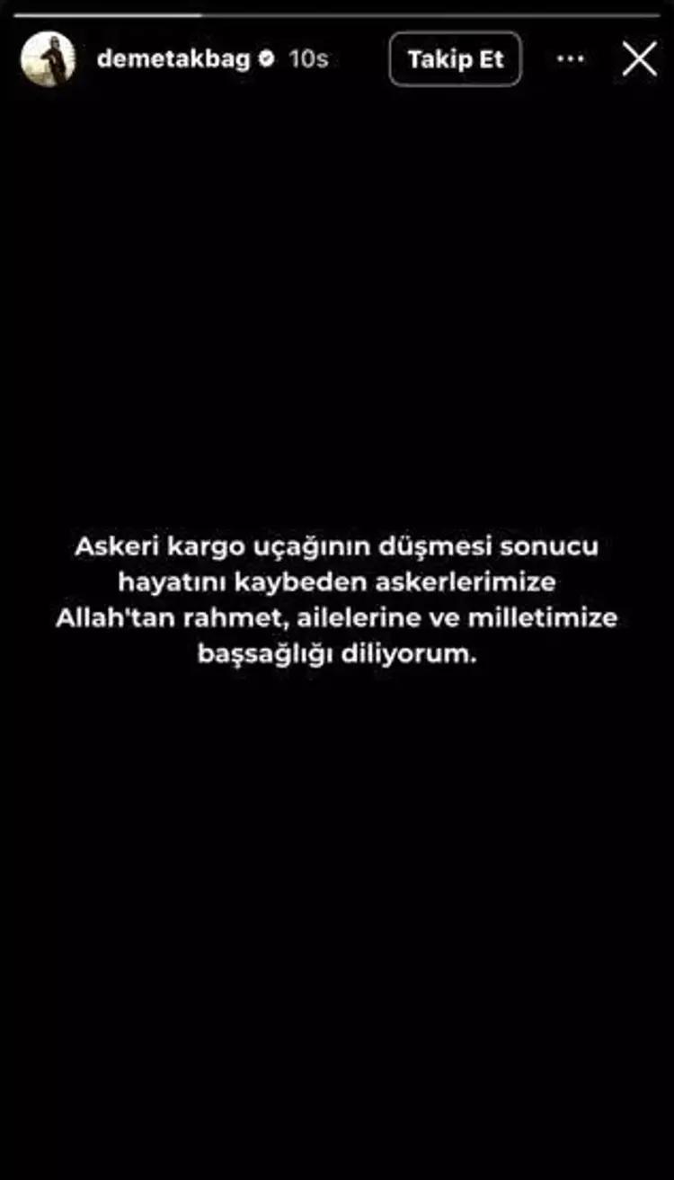 "Askeri kargo uçağının düşmesi sonucu hayatını kaybeden askerlerimize Allah'tan rahmet, ailelerine ve milletimize başsağlığı diliyorum."