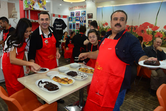 Alternatif Yaşamı Destekleme Derneği`ne (ADER) ait olan ve yaşları 18 ile 35 arasındaki Down Sendromlu gençlerin çalıştırdığı Şişli`deki Down Cafe, ünlü konukları misafir etti.