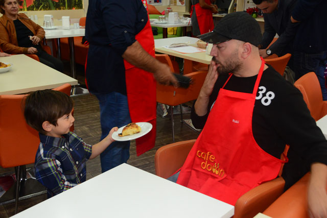 Müşterilerin şaşkın bakışları arasında profesyonelleri aratmayacak bir performans sergileyen ünlüler, Down Sendromlu çocuklara unutulmaz bir gün yaşattı.