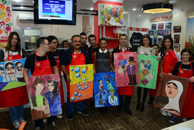 Cafe içerisinde Down Sendromlu çocuklar tarafından yapılıp satılan tabloları ise, Selda Topal, Tuğba Şahin ve Bülent Serttaş tarafından satın alındı.