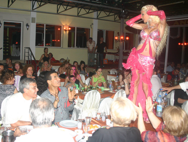 Sabahın ilk ışıklarına kadar türküler ve şarkılar eşliğinde çılgınca eğlenen üç kafadar alkolünde dozunu ayarlayamayınca masalarına gelen ünlü oryantal Özlem'i masaya çıkartıp göbek şovu yaptırdılar. Oryantale 500 şişe şampanya patlatan sanatçılar gençlere taş çıkartırcasına eğlendiler.