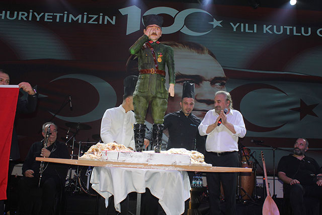 Konser sırasında sahneye Atatürk temalı bir pasta getirildi. Coşkuyla geçen konserde Konak misafirlerine unutulmaz bir gece yaşattı.