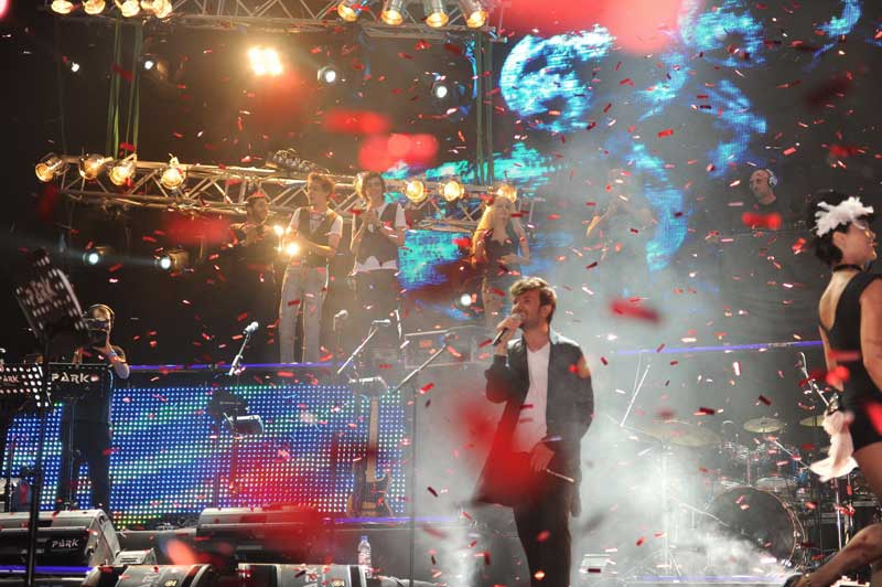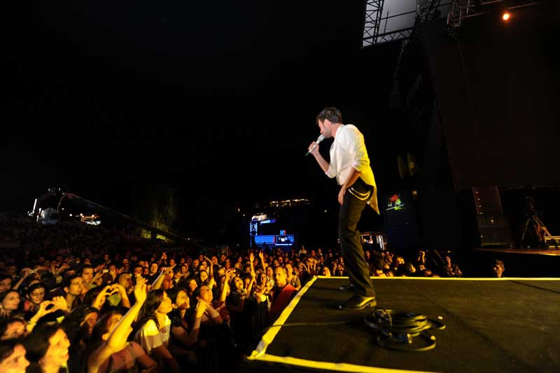Gündüz yağan yağmur nedeniyle sahnenin ıslanmasına aldırmyan Yalın, hayranlarına daha yakın olabilmek için ıslak zemine oturarak "Meleklerin sözü var" isimli şarkısını söyledi.