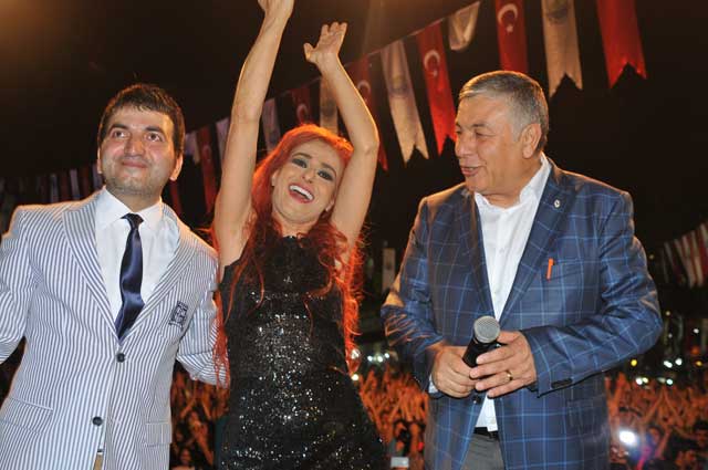 Sarıyer Belediye Başkanı Şükrü Genç'le elele sahneye yürüyen Yıldız Tilbe, yaklaşık iki saat sahnede kaldı.